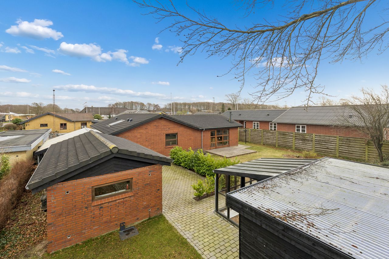 Til huset hører flere gode udbygninger. Carporten giver tørvejr til bilen, mens den separate garage er oplagt som værksted, opbevaring eller hobbyrum. Her er både isolering, troldtektloft og klinkegulv. Derudover rummer grunden et stort redskabsrum samt et udhus, som gør, at haven kan benyttes hele året.
