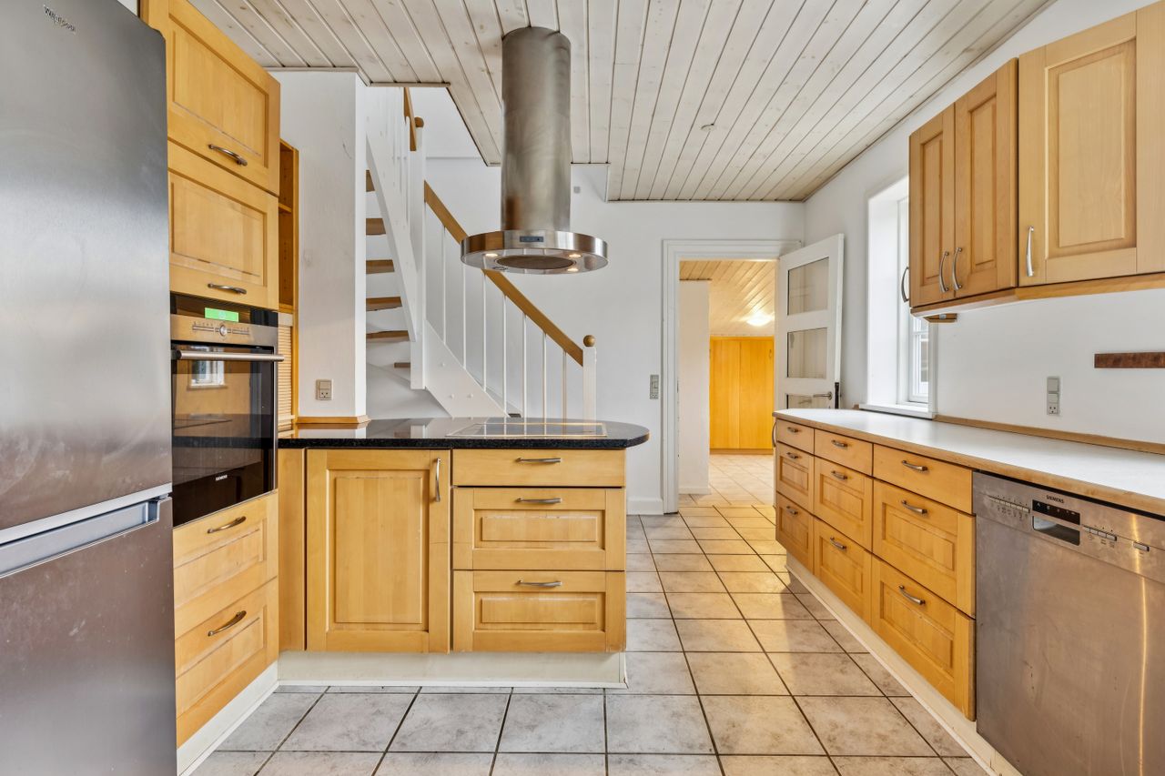 Du træder ind i et hjem med en lys og indbydende stemning, hvor den klassiske byggestil fra 1930érne kan mærkes, og hvor rummene giver dig gode, fleksible rammer at indrette efter. I stueplan finder du blandt andet køkkenet med god skabsplads og flotte overflader, og hvor køkkenøen naturligt samler familien om både madlavning og samvær. Her er plads til, at hverdagen kan glide, uanset om du laver mad alene eller har gæster omkring dig.